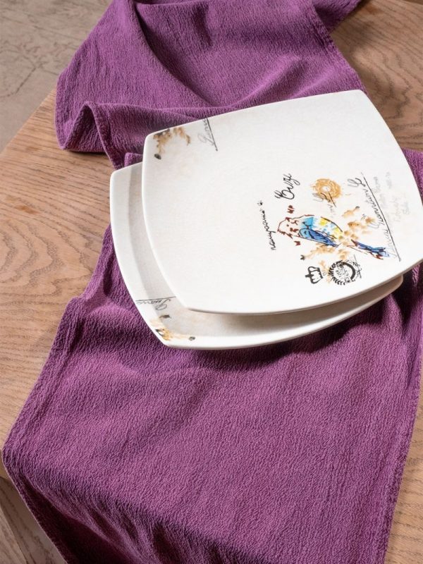 Yıkanmış Keten Masa Örtüsü Runner Fuşya