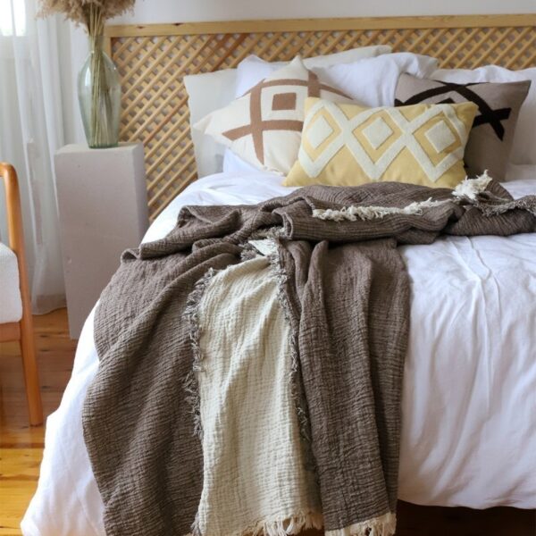 4 Kat Müslin Jakarlı İplik Boya Yatak Örtüsü Windowpane