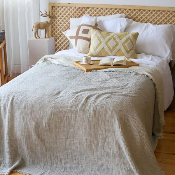Yıkanmış Keten Masa Örtüsü Runner Yeşil