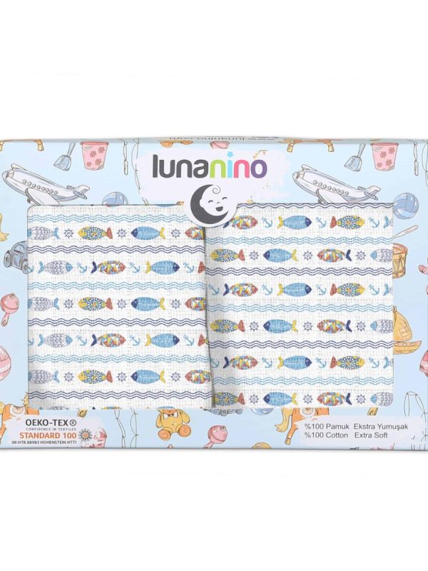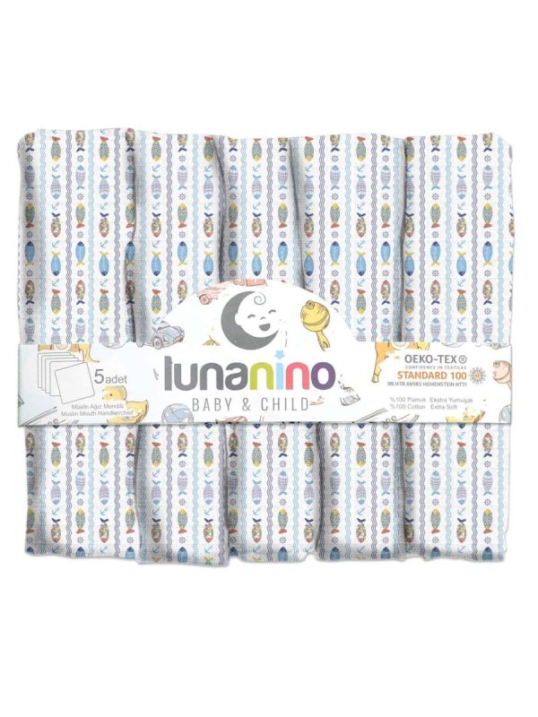 Müslin Desenli Bebek & Çocuk Maske Marin