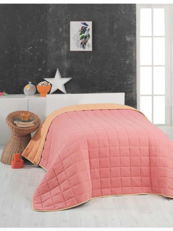 Lunanino Çift Taraflı Müslin Kapitoneli İçi Dolgulu Yorgan Terracota Hardal 190×220 cm