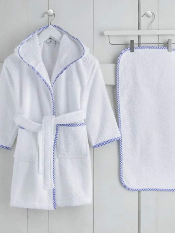 Lunanino Bornoz Seti Mavi Ekose Biyeli | %100 Pamuk