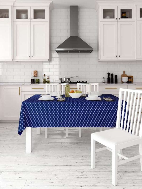 Çok Amaçlı Dekoratif Kumaş Masa Örtüsü Puanlı Lacivert