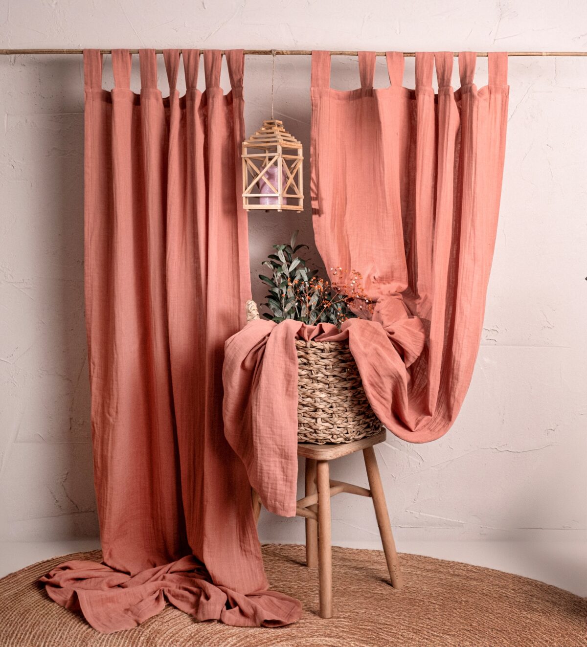 2 Kat Müslin Pamuklu Bohem Perde Terracota