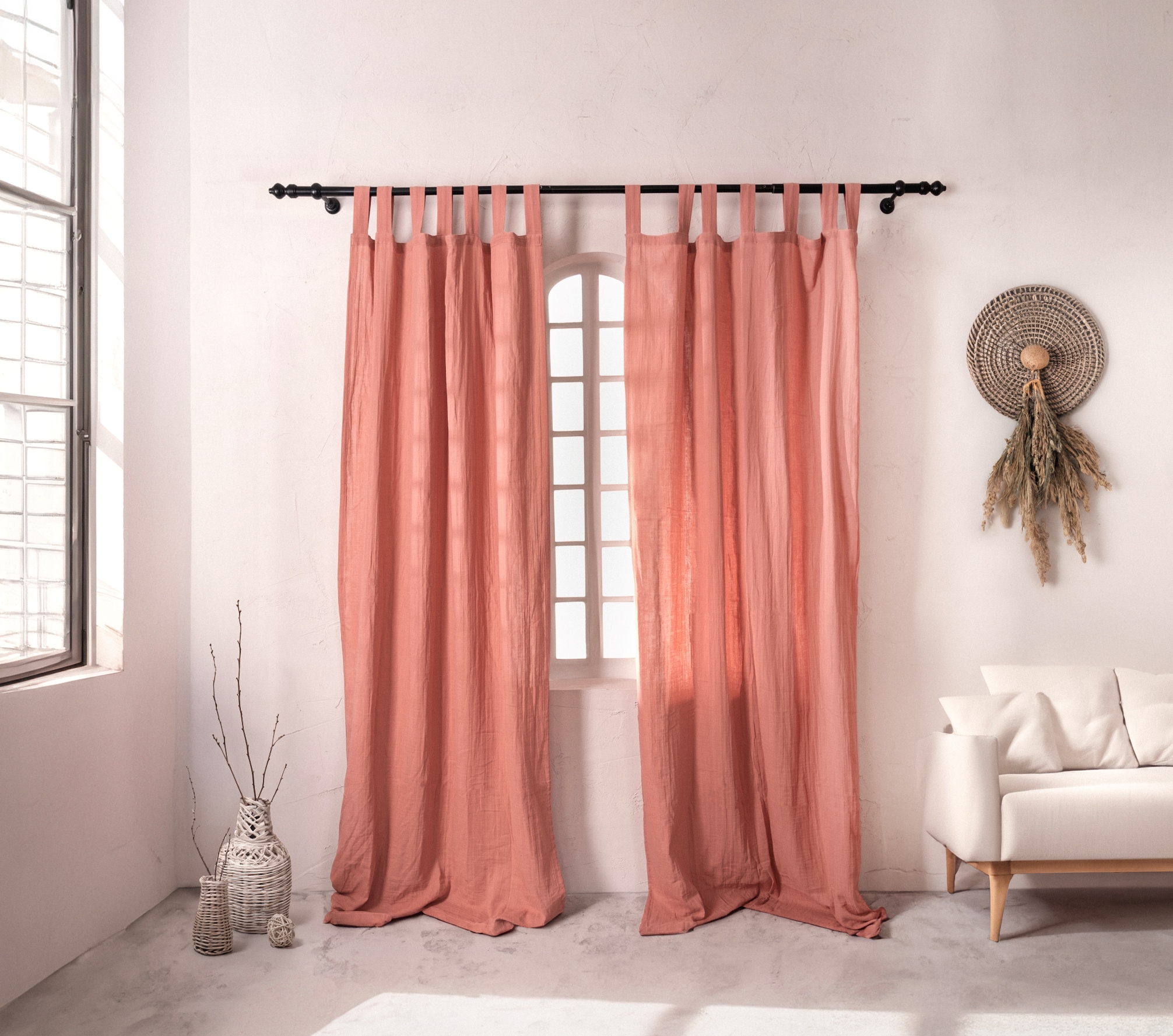 • Müslin perdeler odanıza bol miktarda ışık girmesine izin verir, ancak aynı zamanda tül perdelere göre daha fazla mahremiyet sağlar.
