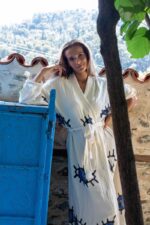 Ürün Bilgisi: Ağaç Baskı/ Taş Baskı El Yapımı Pamuklu Kimono Bornoz