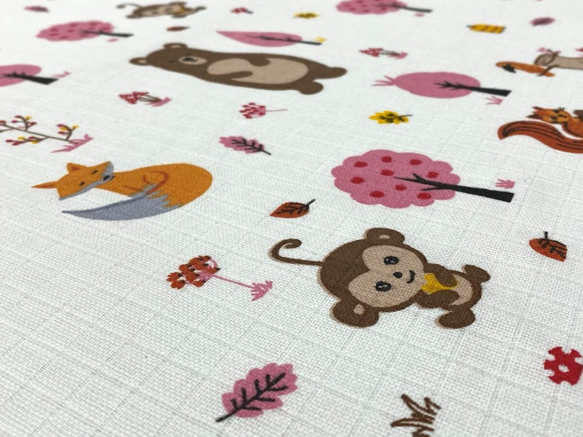 Müslin Pamuklu Kumaş Orman Ayı Pembe