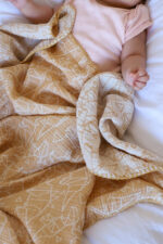 Birlik1952 Jakarlı 3 Kat Crinkle Müslin Bebek Battaniyesi Dino Origami Hardal
