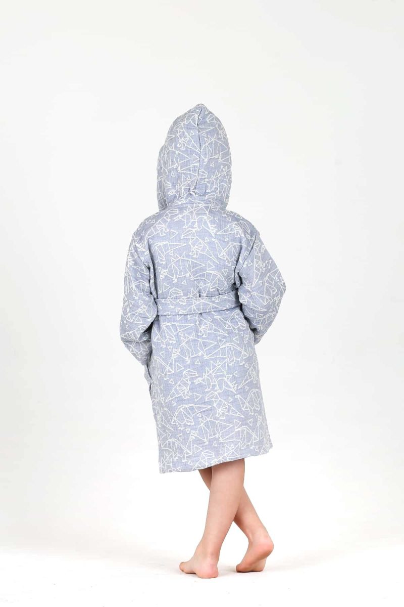 Birlik1952 Jakarlı 3 Kat Crinkle Müslin Bebek Çocuk Bornozu Dino Origami Mavi