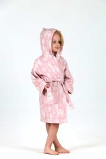 Birlik1952 Jakarlı 3 Kat Crinkle Müslin Bebek Çocuk Bornozu Lama Pembe