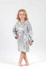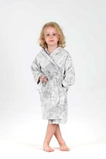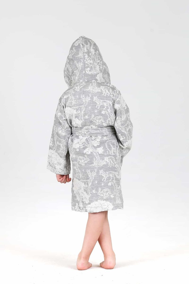Birlik1952 Jakarlı 3 Kat Crinkle Müslin Bebek Çocuk Bornozu Wild Animals Gri