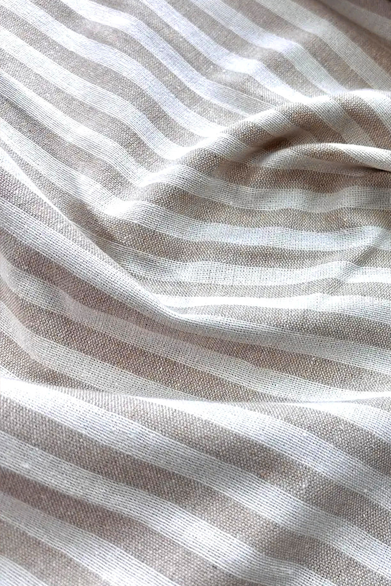Çizgili Yıkanmış Keten Buldan Bezi Bej