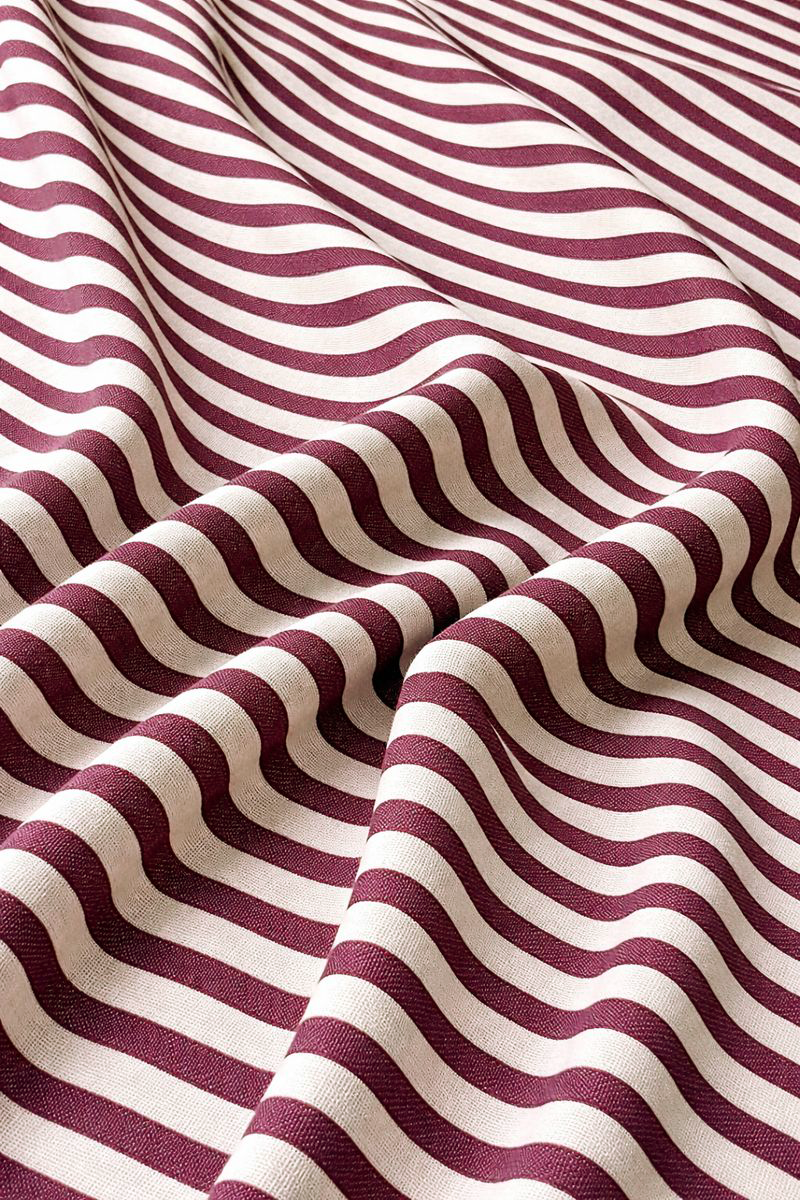 Çizgili Yıkanmış Keten Buldan Bezi Bordo