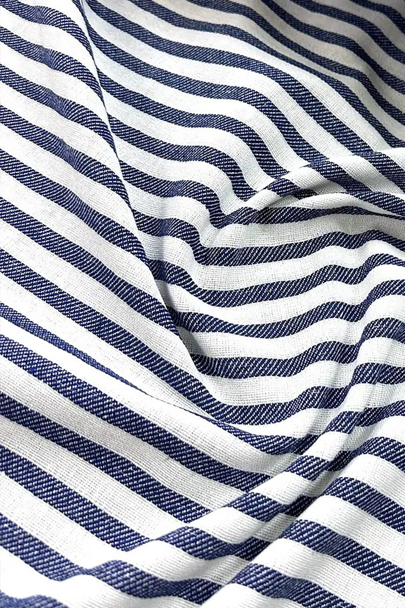 Çizgili Yıkanmış Keten Buldan Bezi Lacivert