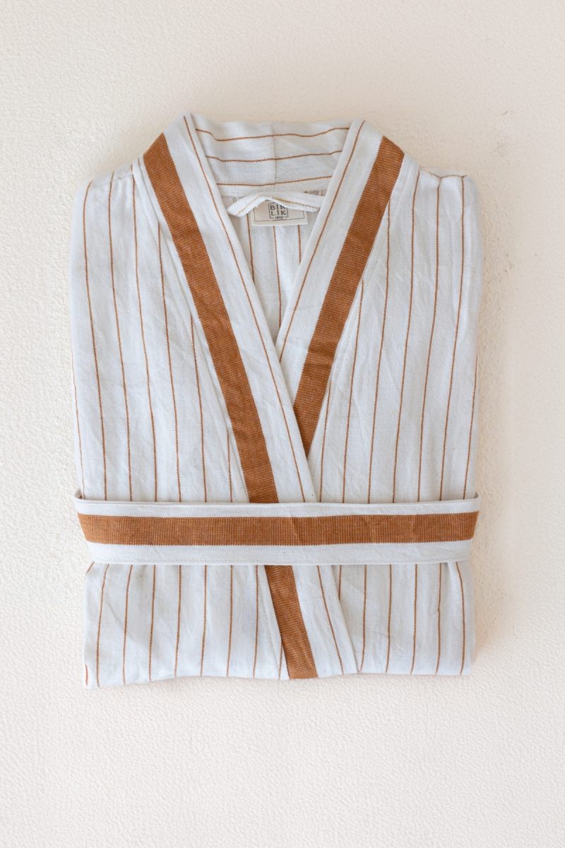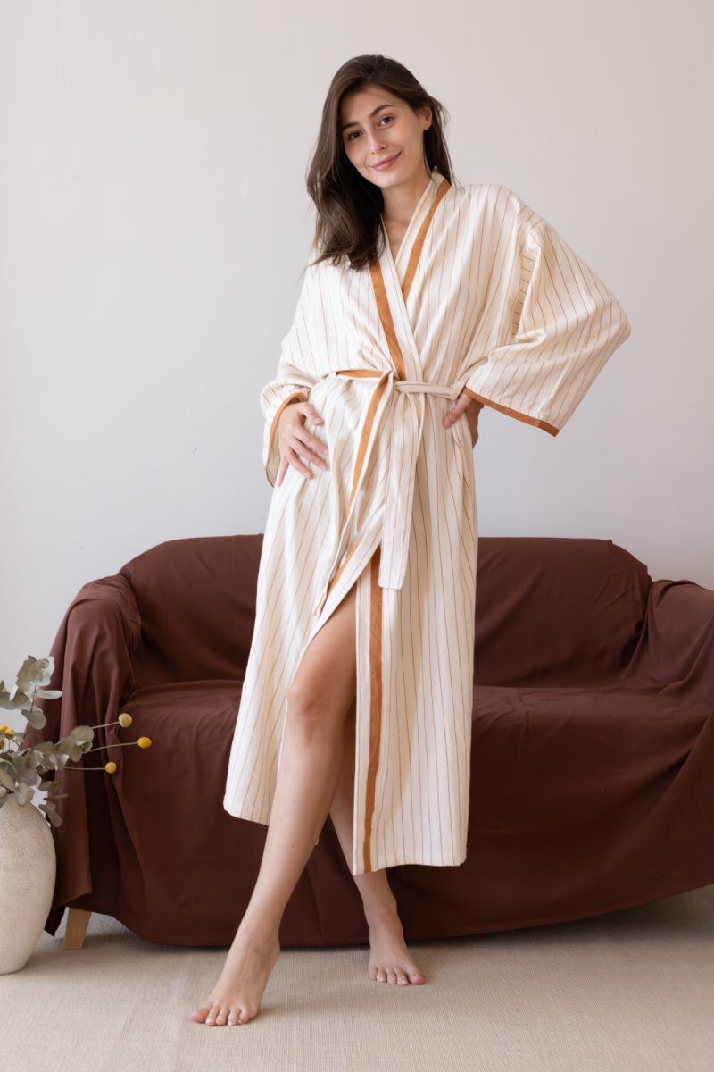 Kara Tezgah Pamuklu Peştemal Kimono Italy Striped Brown