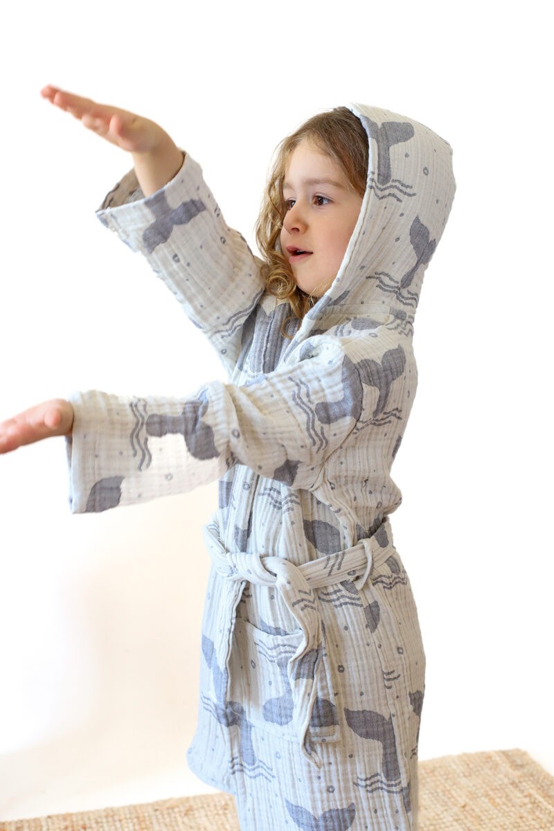Jakarlı 3 Kat Crinkle Müslin Çift Taraflı Kumaş Whale Tail