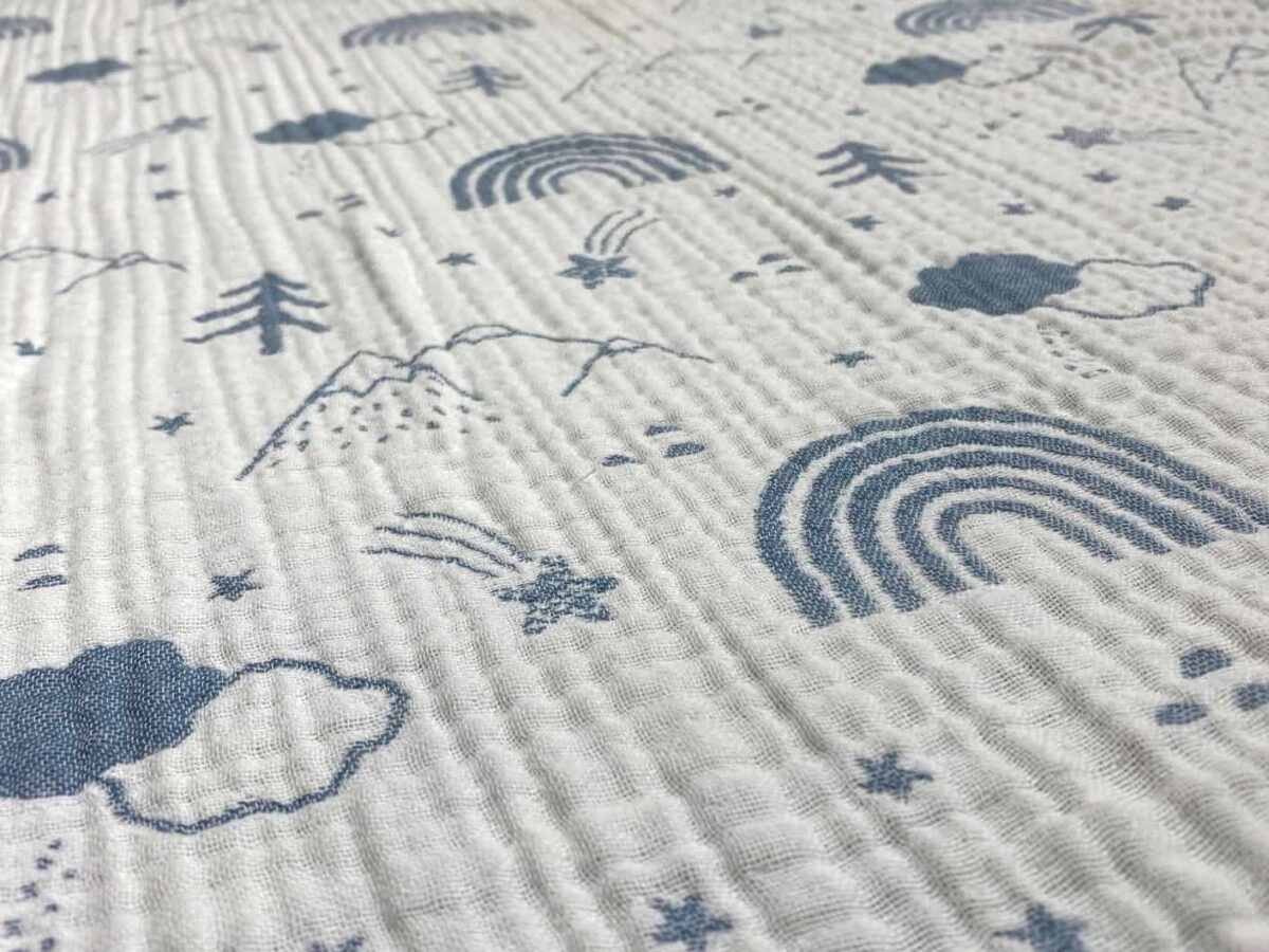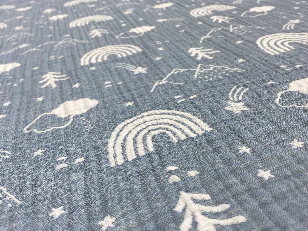 Jakarlı Bebek Çocuk Çift Taraflı 4 Kat Multi Müslin Kumaş Gökkuşağı Rainbow Mavi