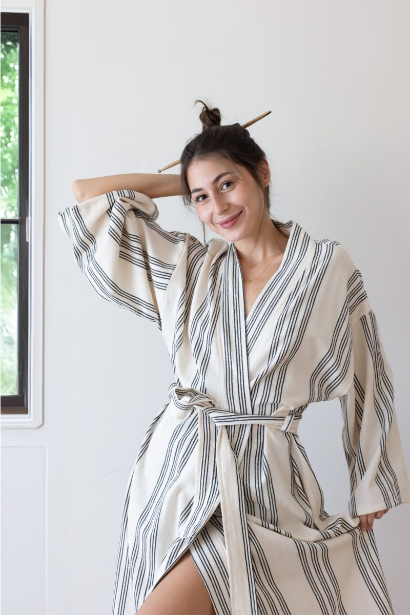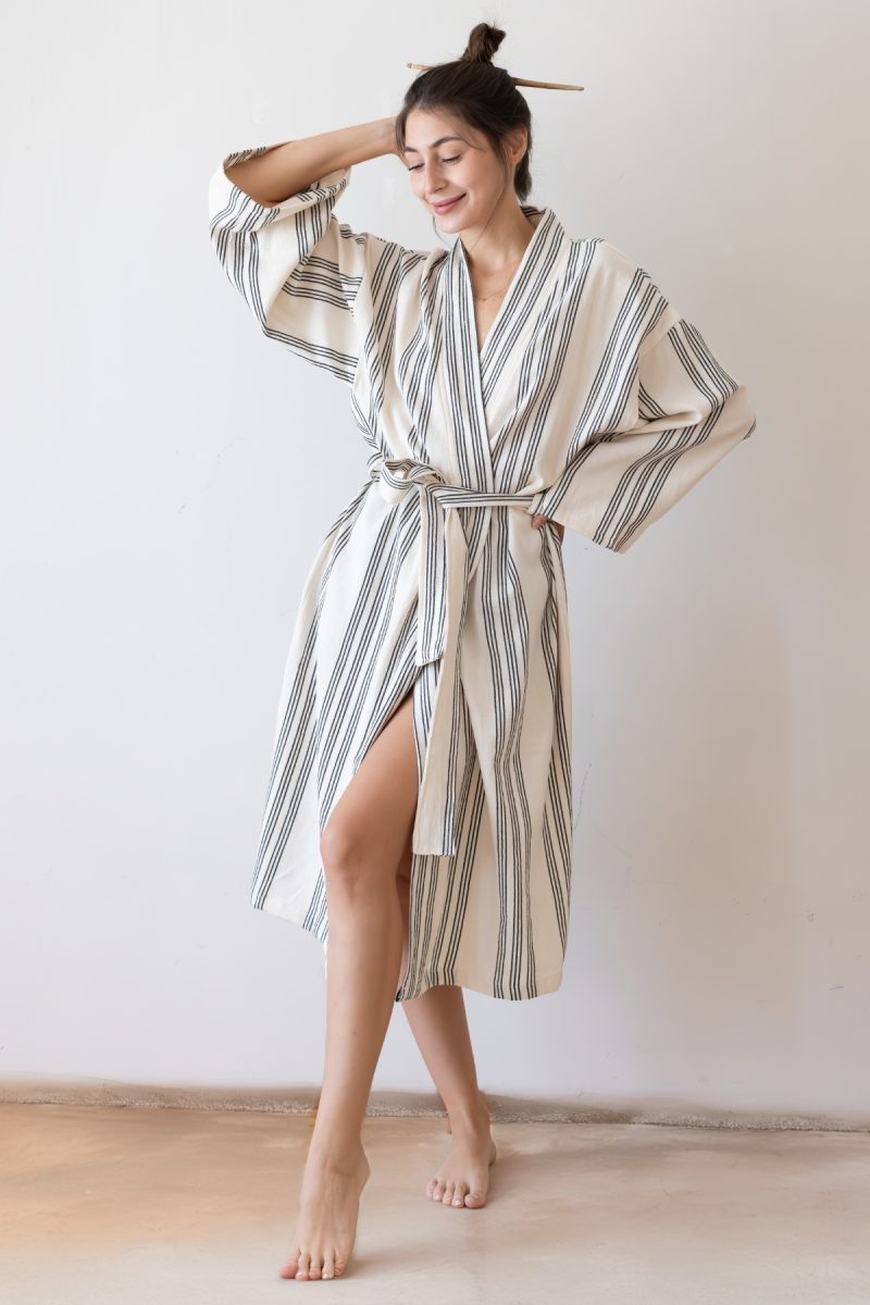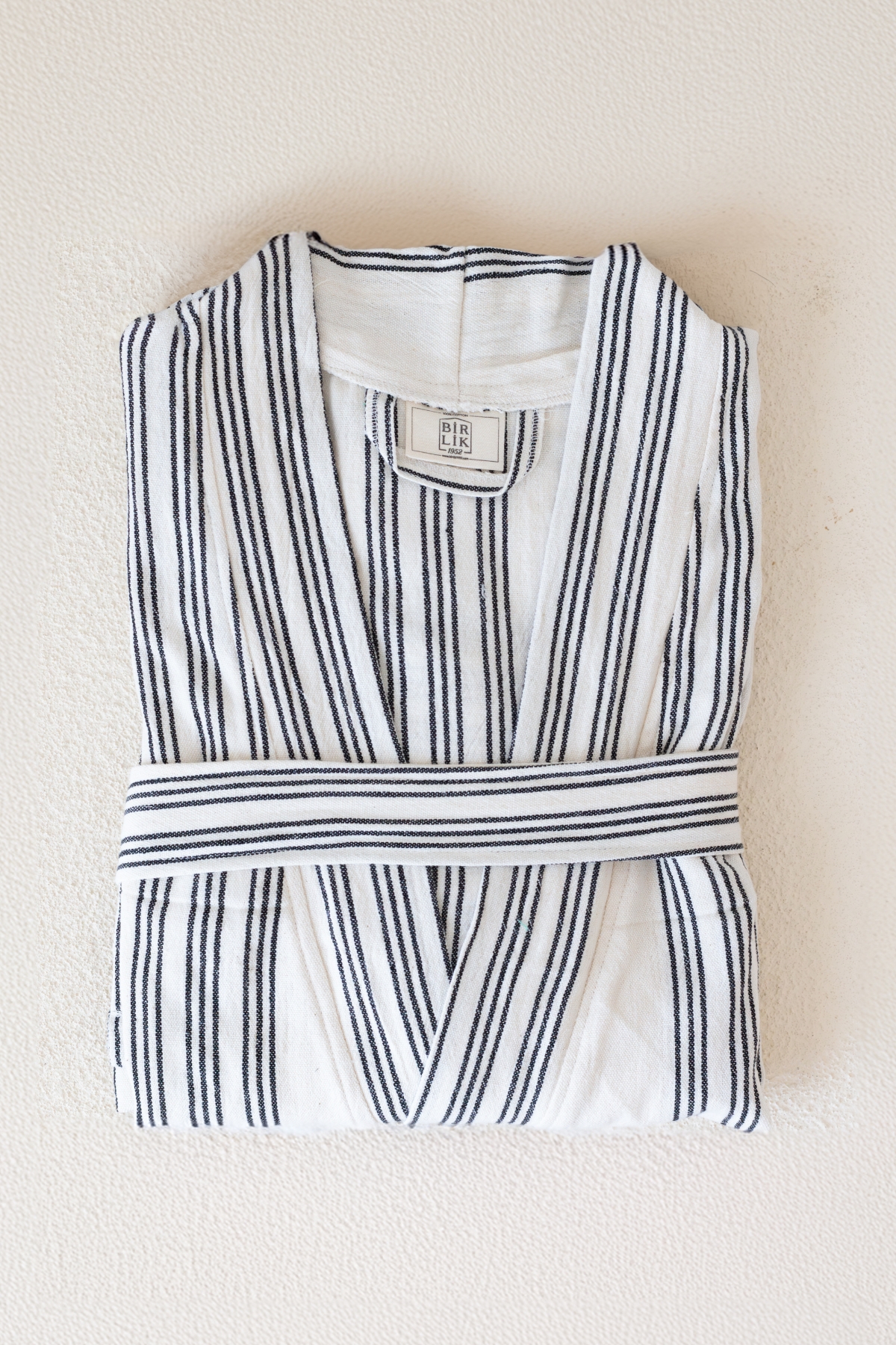 Ürün Bilgisi: El Dokuması %100 Pamuklu Peştemal Kimono Bornoz Çizgili (Kara Tezgah)