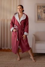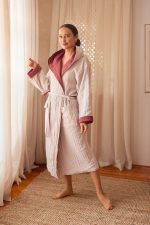 Müslin Çift Taraflı Pamuklu Bornoz Bordo Bej