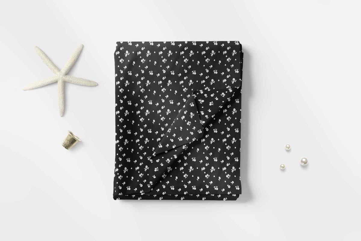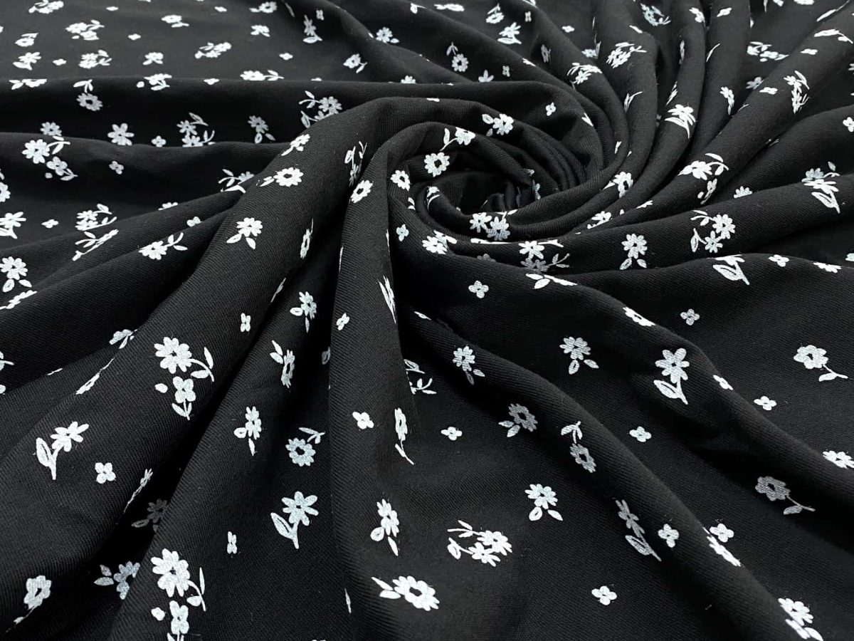 Pamuklu 3 İplik Penye Kumaş Kır Çiçekleri Siyah