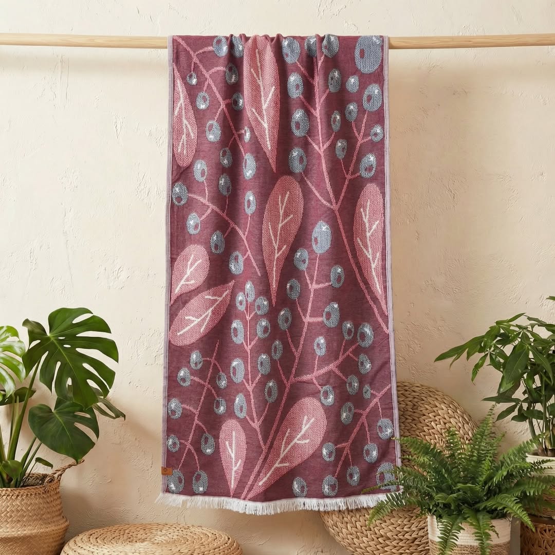 Pamuklu Etamin Jakarlı Peştemal Cranberry