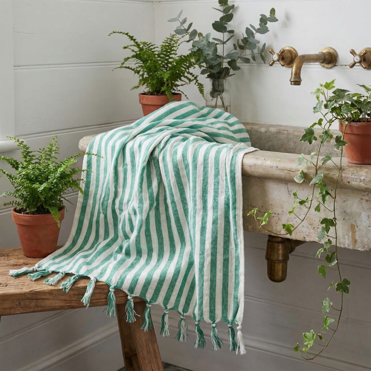 Pamuklu Kara Tezgah Peşkir Çubuklu Benetton Yeşil