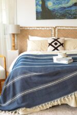 Peştemal İplik Boya Yatak Örtüsü Çift Kişilik Çizgili Navy