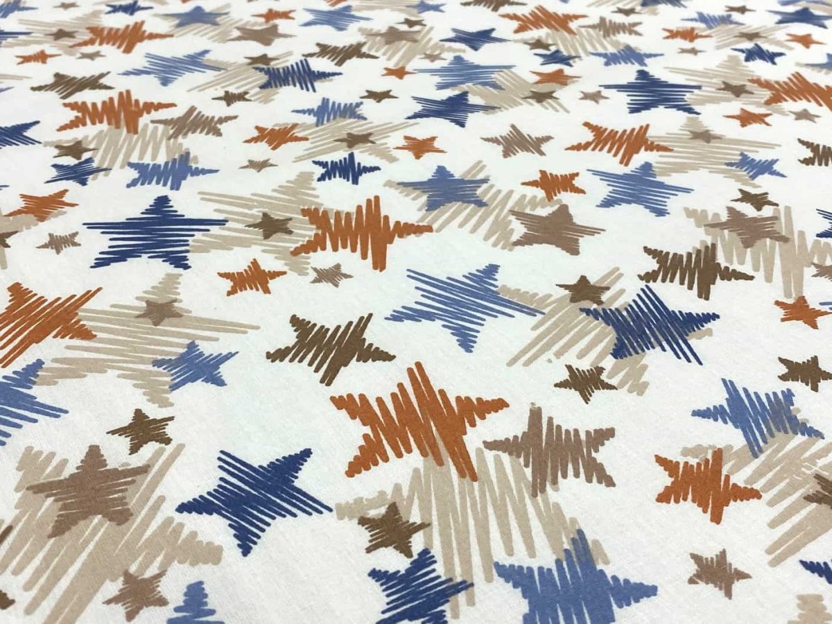Poplin 63 Tel Pamuklu Kumaş Çizgisel Yıldız Mavi