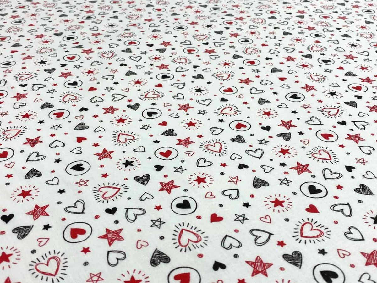 Poplin Pamuklu Kumaş Kalp Yıldız Kırmızı Siyah 170 cm