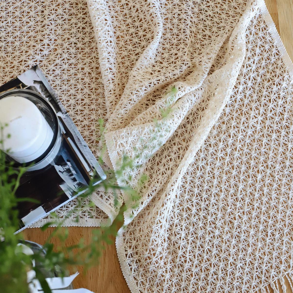 Runner Masa Örtüsü Ham Pamuk Örme Dantel Saçaklı Spider Krem