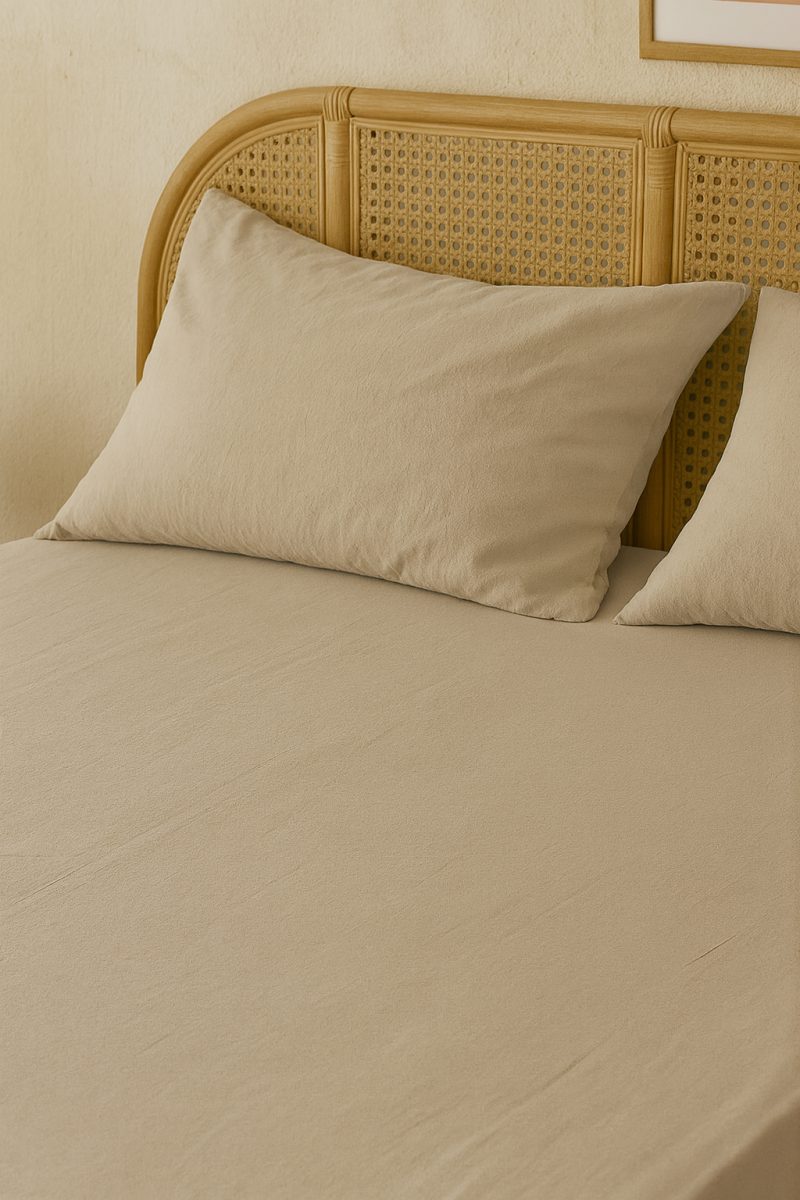 Stonewashed 100% Pamuk Kumaş Çarşaf Bej