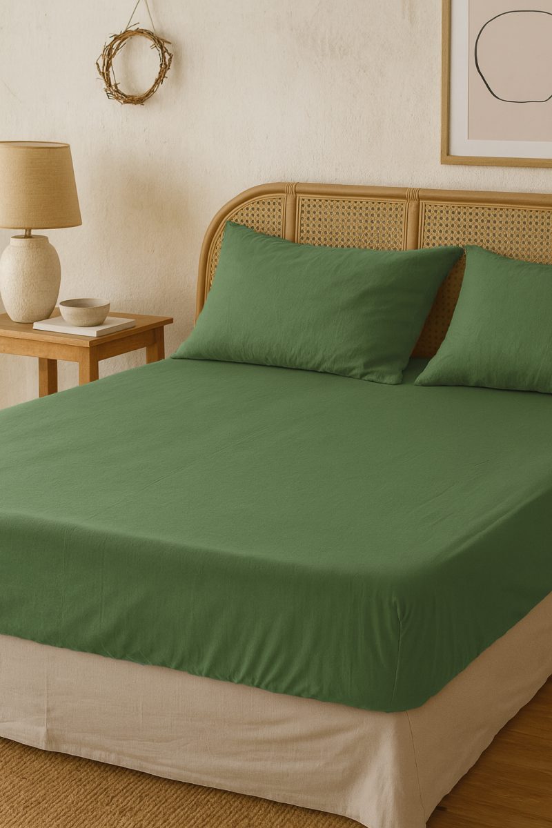 Stonewashed 100% Pamuk Kumaş Çarşaf Ceviz Yeşili