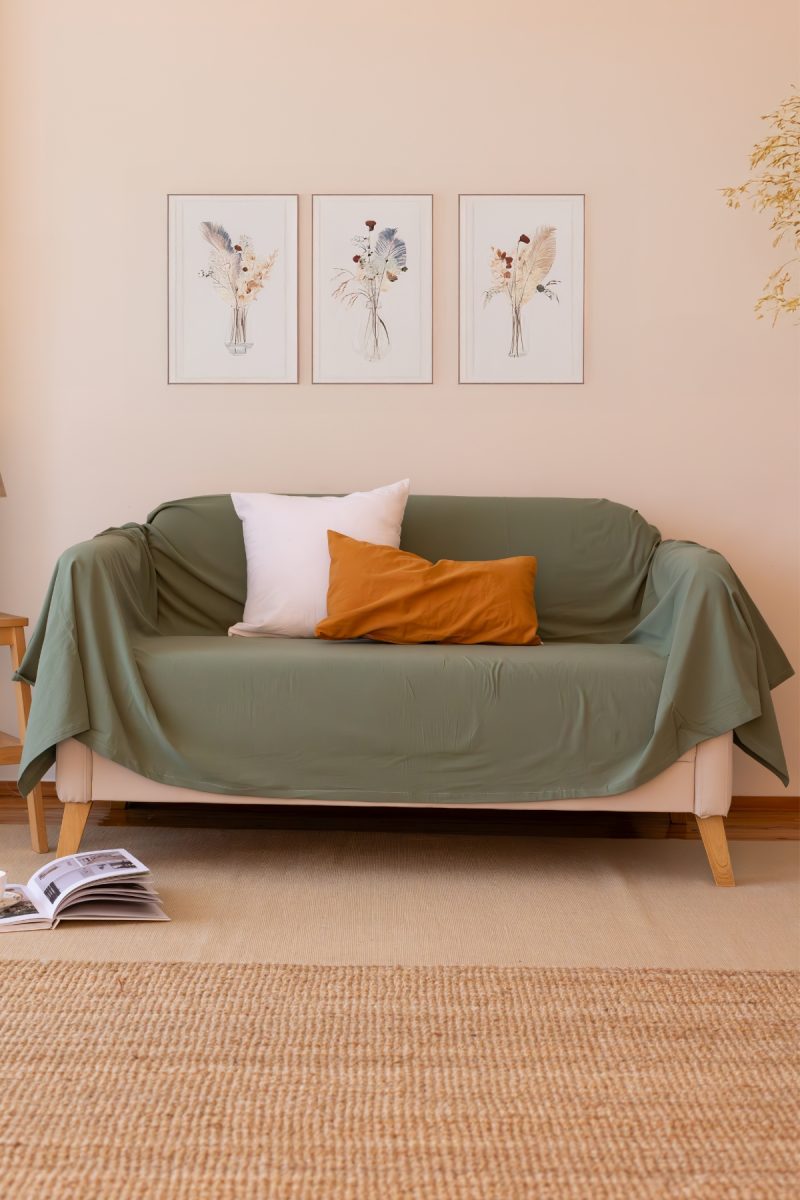 Stonewashed 100% Pamuk Kumaş Koltuk Örtüsü Ceviz Yeşili